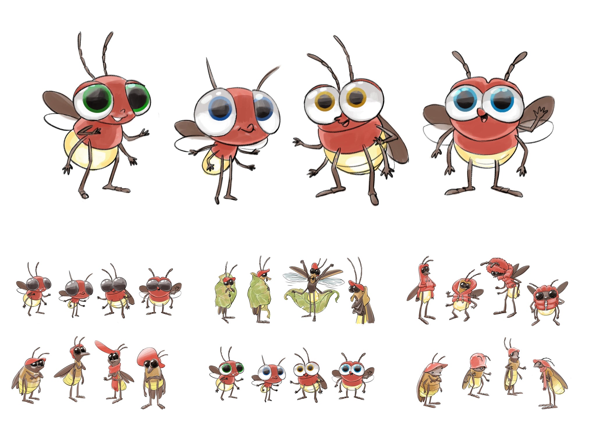 We introduced new characters into this world featuring the very adorable Master Good fireflies, who do not appreciate the cold weather. Below are some of the concept art we created and a few storyboard frames during our brainstorming sessions.